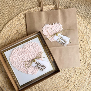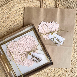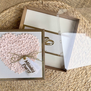 080,kartka na ślub w pudełku z kwiatowym sercem i torebką