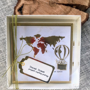 207,biletem na wspólną podróż – kartka na ślub w kremie i złocie II