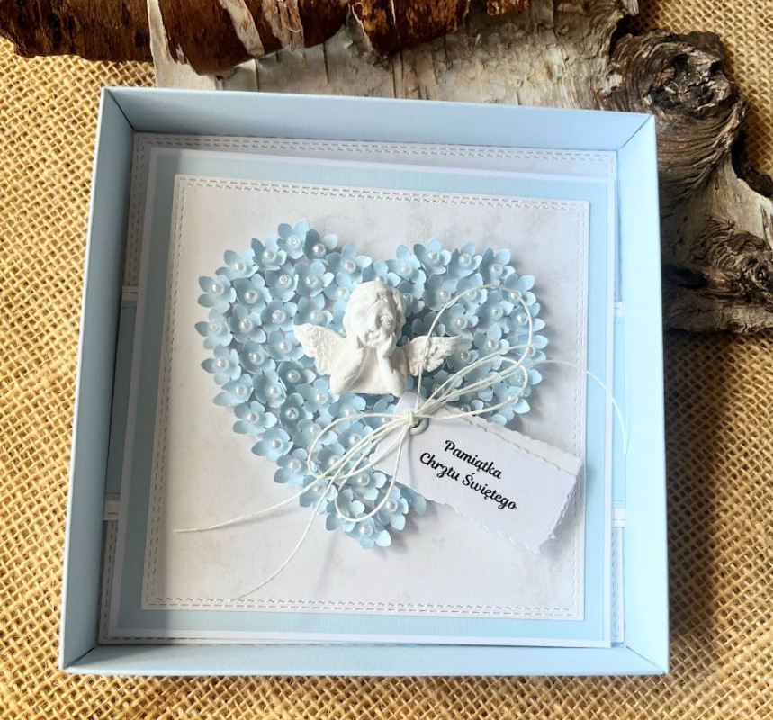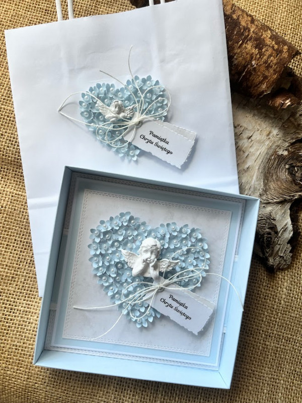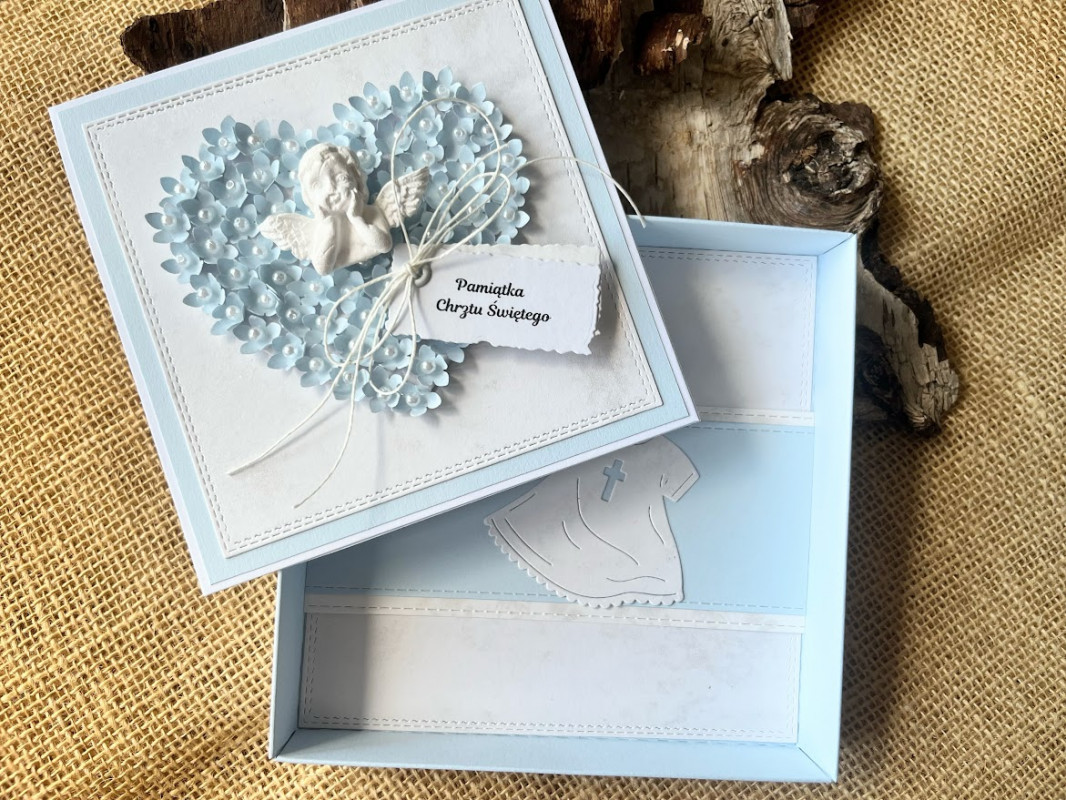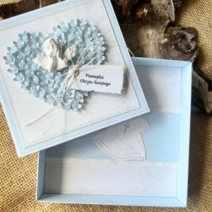 262,kartka na chrzest św. w pudełku z torebką dla chłopca