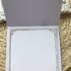 Wewnątrz znajduje się elegancka wkładka na karnet z życzeniami.