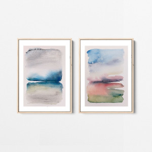 Dwie prace wykonane farbą akwarelową na papierze akwarelowym 300g/m2, format każdej A5. Przedstawione są w przykładowych ramach. Zapraszam :)
