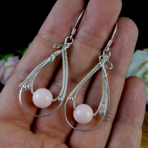 Srebrne kolczyki z pięknym agatem różowym. Całość wykonana przeze mnie od podstaw bardzo pracochłonną i precyzyjną techniką wire-wrapping. Biżuteria wykonana ze srebra próby 924, 930 oraz 999. Kolczyki idealne na co dzień oraz na wieczorne wyjście. Wymiary: Długość z biglami: 5.9 cm Szerokość: 2.2 cm. Biżuteria zostanie zapakowana w ozdobne pudełeczko.