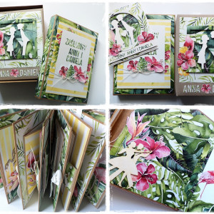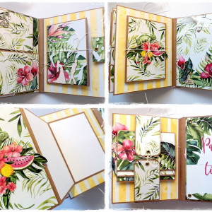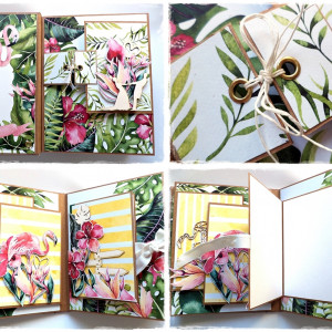 Album składa się z 6 kart wewnętrznych natomiast dzięki systemowi klapek, zakładek, schowków i harmonijek, pomieści około 30-40 zdjęć.