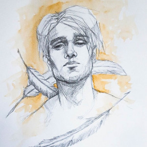 "Anioł - portret" rysunek ołówkiem z dodatkiem akwareli wykonany przez artystkę plastyka Adrianę Laube na białym 300 gramowym papierze A3 (42cm x 30cm). Praca sygnowana, wysyłana w dobrze zabezpieczonej, kartonowej tubie, by dotarła do Państwa w idealnym stanie.