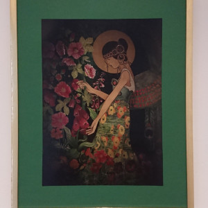 "Anioł w ogrodzie" to reprodukcja autorskiej akwareli inspirowanej obrazem Kazimierza Sichulskiego "Anioł". Obraz wykonany w technice akwareli, wraz z ramą ma wymiar 52 x 42 cm. Jest oprawiony w ramkę w kolorze złotym, posiada przednią osłonę z tworzywa oraz mocowanie do zawieszenia na ścianie.