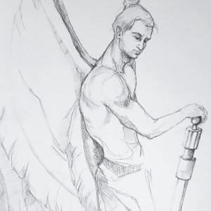 "ANIOŁ WSPARCIA" rysunek ołówkiem artystki A.Laube
