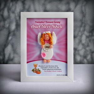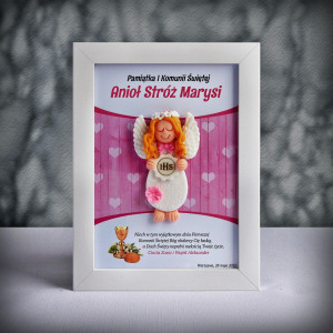 Pamiątka I Komunii Świętej - aniołek w ramce