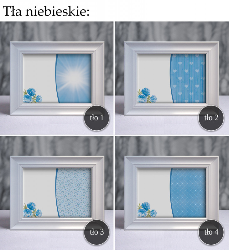 Proszę wybrać wzór tła, który ma być użyty w ramce spośród pokazanych na zdjęciu przykładów. Brak wyboru tła spowoduje, że będzie ono wybrane losowo.