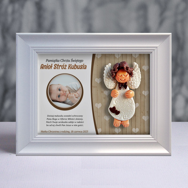 Aniołek w ramce - Pamiątka Chrztu (pzf-b3d-cd-ch03-sk2-tz)