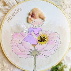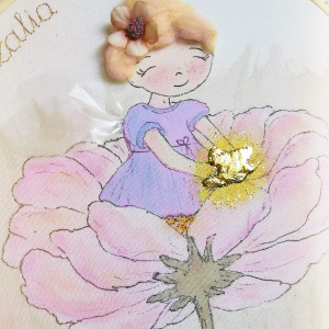 Aniołek wróżka na kwiatku, personalizowana pamiątka dla dziewczynki