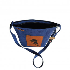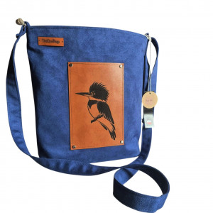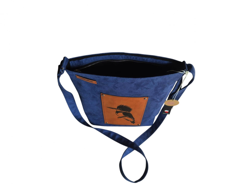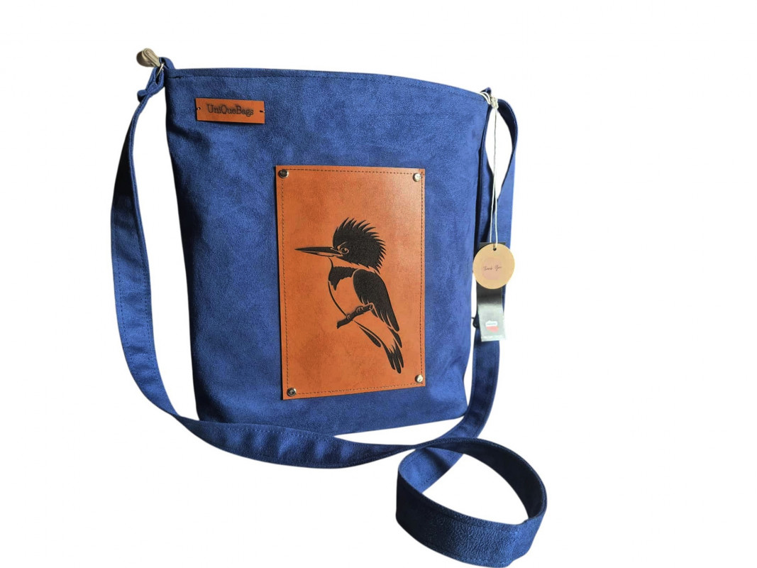Artystyczna kobaltowa wegańska torebka z zimorodkiem