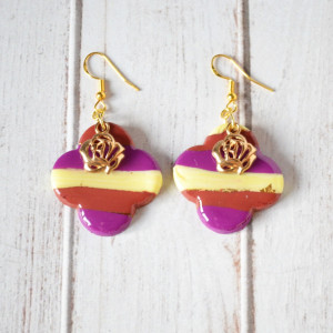 Kolczyki pokryte są żywicą syntetyczną, dzięki czemu kolory są wyraziste a kolczyki bardziej wytrzymałe.