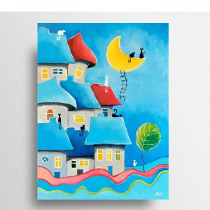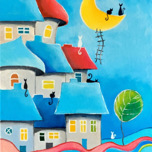 Bajkowe miasteczko kotów-obraz akrylowy 30/40 cm