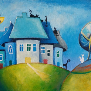 Bajkowe miasteczko -obraz akrylowy 30/20 cm