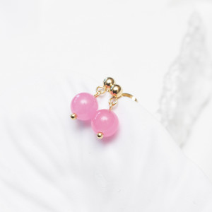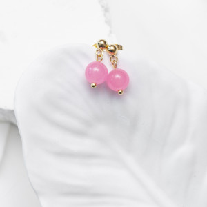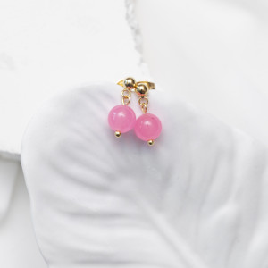 Bardzo delikatne kolczyki pozłacane z różowym jadeitem.