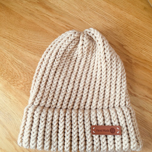Ciepła czapka wykonana ręcznie z włóczki z dodatkiem wełny Merino.