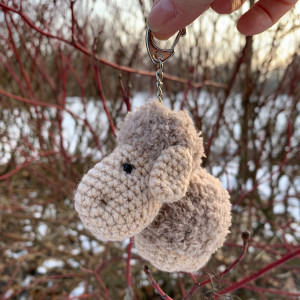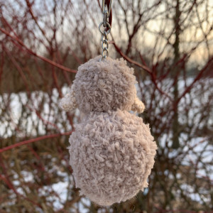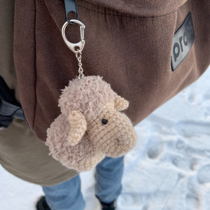Sympatyczny brelok owieczka wykonany ręcznie z fantazyjnej włóczki na szydełku.