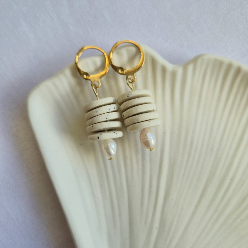 Beżowe kolczyki z perłą