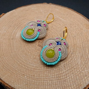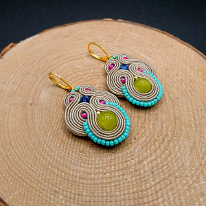 Beżowo-kolorowe wiszące kolczyki sutasz