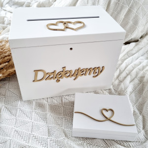 oraz pudełka na obrączki w kolorze białym z dodatkami w kolorze złotym.