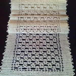 Bieżnik wykonany ręcznie w kolorze ecru. Wymiary 30 cm x 180 cm. Autorski projekt i wykonanie. Zdjęcie przedstawia wzór. Czas realizacji zamówienia ok. 14 - 18 dni. Na życzenie możliwość, po uprzednim uzgodnieniu, wykonania w innym rozmiarze lub kolorze (cena uzależniona od rozmiaru)