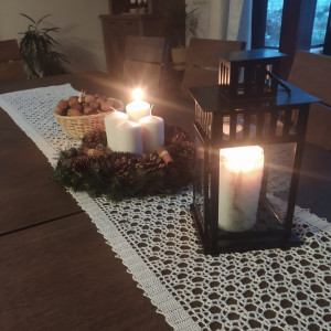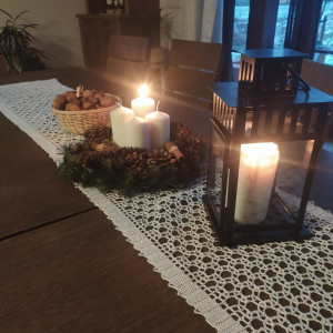 Bieżnik wykonany ręcznie w kolorze śnieżnobiałym. Wymiary 30 cm x 150 cm. Autorski projekt i wykonanie. Zdjęcie przedstawia wzór. Czas realizacji zamówienia ok. 14 - 18 dni. Na życzenie możliwość, po uprzednim uzgodnieniu, wykonania w innym rozmiarze lub kolorze (cena uzależniona od rozmiaru)