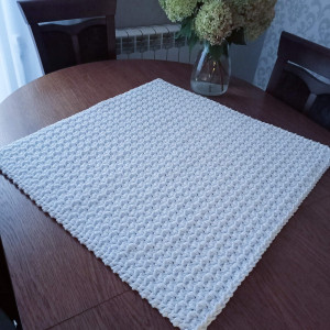 Bieżnik o wymiarach 70cmx70cm, wykonany metodą szydełkowania z polskiego sznurka bawełnianego 5mm.