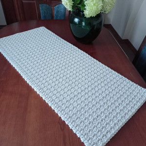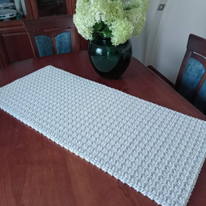 Bieżnik o wymiarach 50cmx100cm, wykonany metodą szydełkowania z polskiego sznurka bawełnianego 5mm.