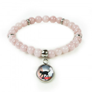 Bransoletka z kamieni naturalnych - beżowych jadeitów, o wielkości koralików 6 mm oraz z eleganckim medalionem z autorską ilustracją. Prezentuje się pięknie, a świetnie dobrany kolorystycznie medalion nadaje całości czaru i tajemniczości. Bransoletka pasuje do wielu stylizacji.