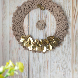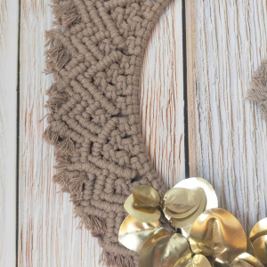Makramowy wianek ręcznie robiony pięknie wygląda jako dekoracja ściany w salonie, sypialni i jadalni. Ociepli każde wnętrze i nada niepowtarzalnego charakteru. Sprawdzi się jako dekoracja balkonu i altany oraz tarasu.