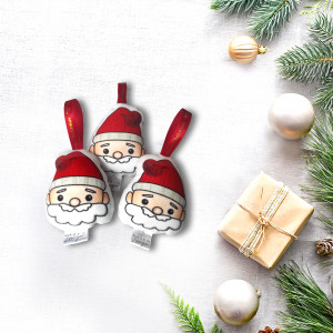 Mamy przyjemność przedstawić Państwu komplet trzech małych bombek o nieregularnym kształcie, wypełnionych kulką silikonową. Nadruk przedstawia ilustrowaną postać Świętego Mikołaja. Nasze bombki wykonane są z wysokiej jakości microfibry, która jest nie tylko miękka i przyjemna w dotyku, ale także bardzo trwała. Praca z dwóch stron posiada taki sam nadruk. Bombki są drukowane i szyte ręcznie w Polsce. Komplet zawiera 10 szt. zawieszek o wysokości 8 cm + gratis inna bombka.