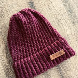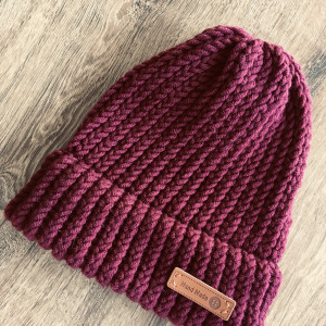 Ciepła czapka wykonana ręcznie z włóczki z dodatkiem wełny Merino.