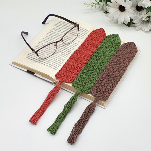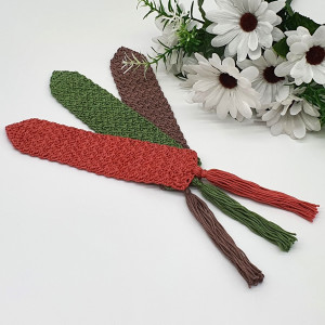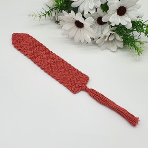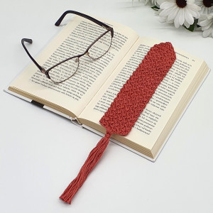Zakładka do książki w kolorze bordowym, wykonana została na szydełku z bawełnianej włóczki. Wymiary zakładki to: 19,5 cm x 4 cm. Razem z chwostem zakładka ma długość ok. 30 cm.