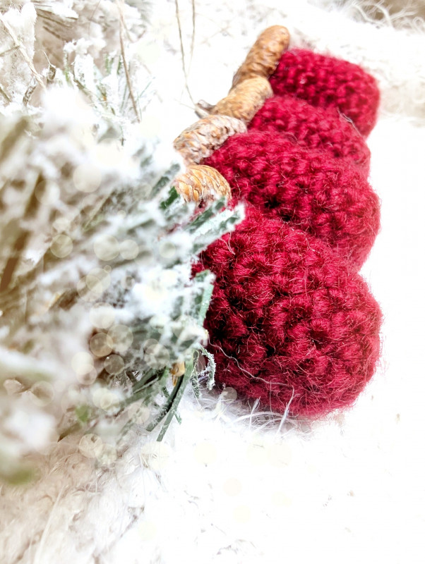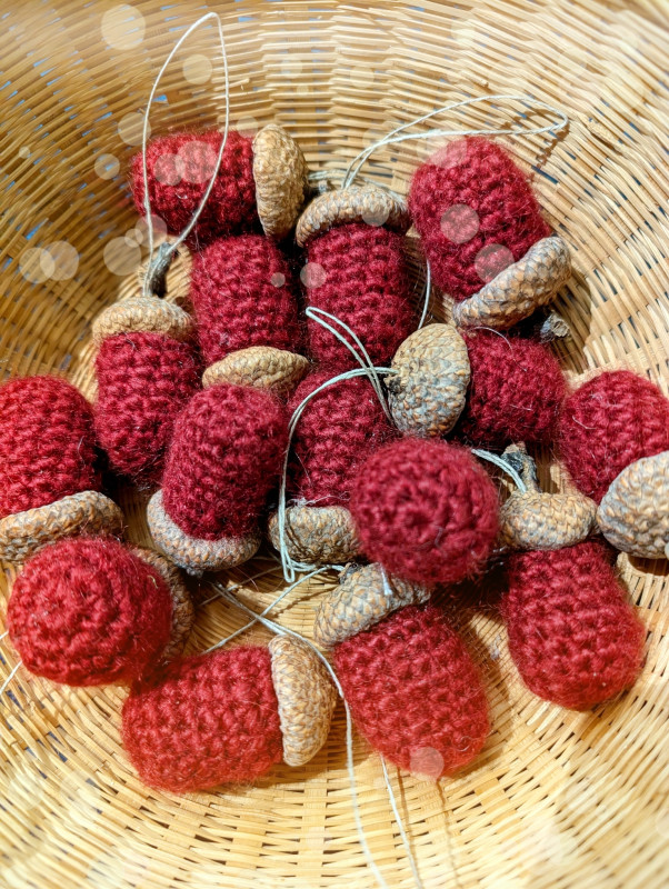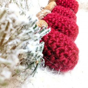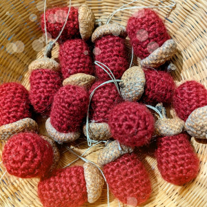Każda bombka została misternie wykonana na szydełku i ozdobiona prawdziwą żołędziową czapeczką, co nadaje jej autentyczny i wyjątkowy wygląd. Ta bombka to idealne połączenie tradycyjnego rękodzieła z naturalnym akcentem.