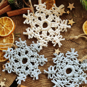 Średnica śnieżynki ok 12 cm + zawieszka ze sznurka jutowego