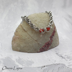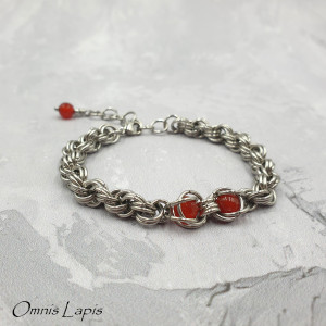 Bransoleta chainmaille - agat pomarańczowy i stal
