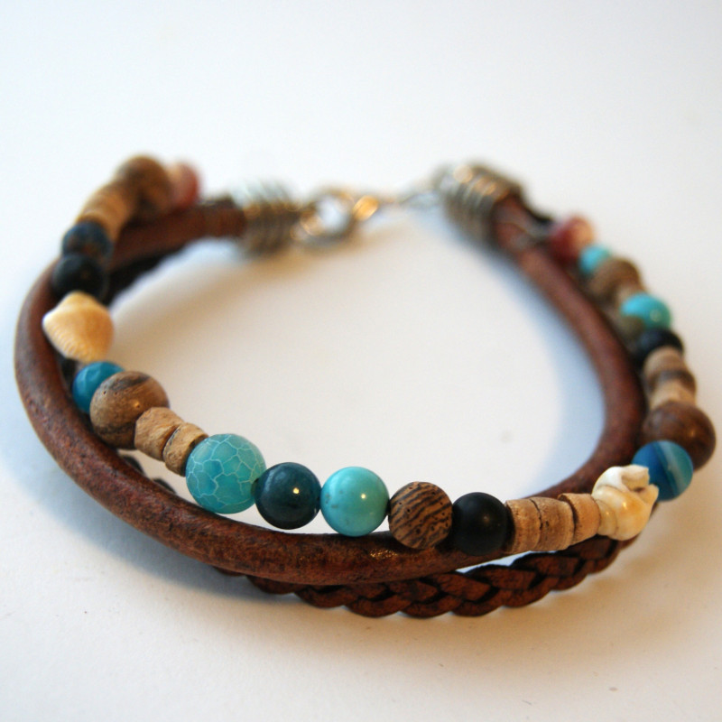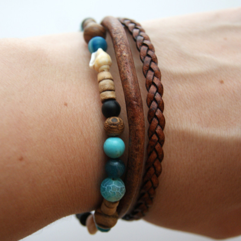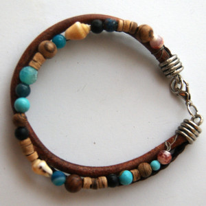 Bransoletka AGAT, JASPIS, MUSZLA, TURKUS, DREWNO, LAWA i rzemień