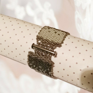 Efekt cieniowania matowych kolorów: szarego, bladego różu oraz grafitu, ożywiony odrobiną metalicznego połysku.