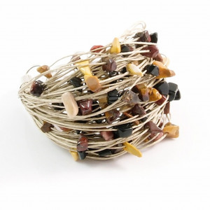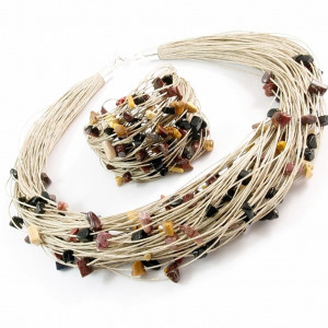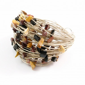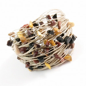 Bransoletka wykonana z wysokogatunkowej i gładkiej w dotyku przędzy lnianej, oraz dużej ilości bryłek onyksu i mokaitu. Niezwykły melanż kolorystyczny.