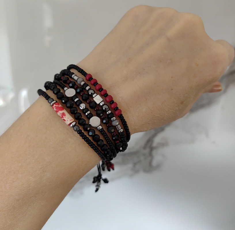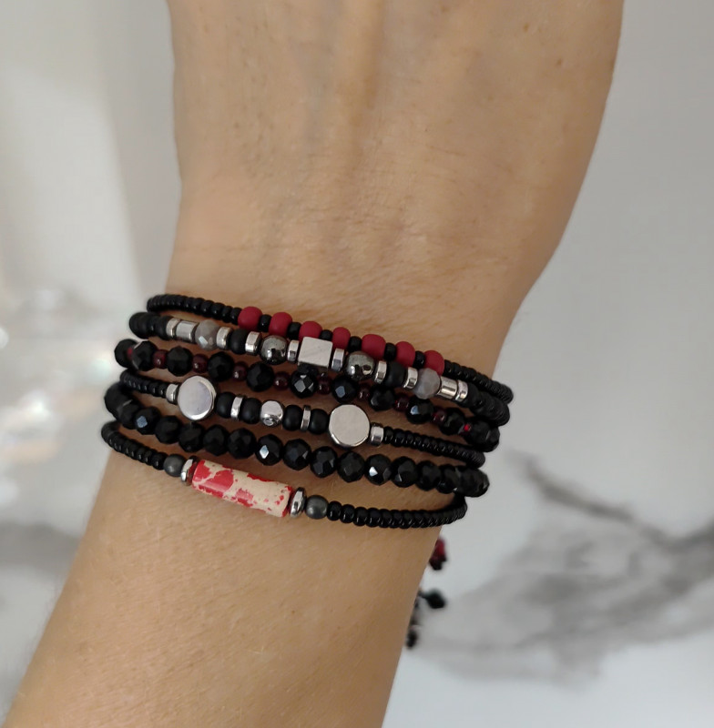 koraliki szklane, hematyt,howlit,