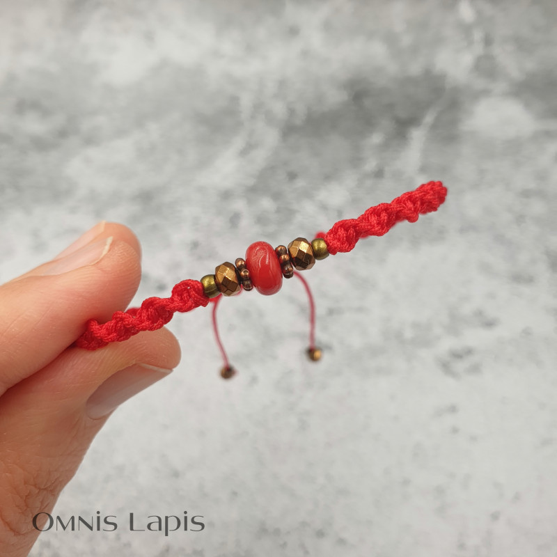 Bransoletka dedykowana na nadgarstek w obwodzie 16,5 cm wzwyż: odpowiednią długość dobierzesz dzięki przesuwnym sznureczkom.