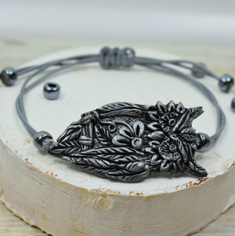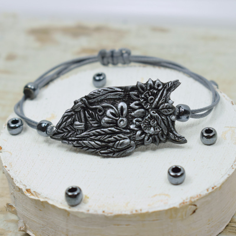 Bransoletka została wykonana w całości ręcznie, z profesjonalnej glinki polimerowej. Jest to materiał bardzo trwały, lekki i odporny na uszkodzenia. 100% handmade.