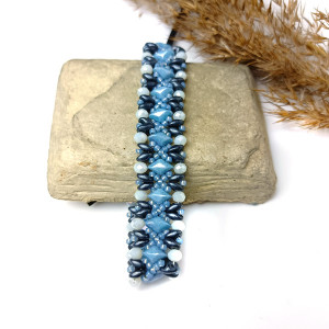 Oryginalna bransoletka wykonana została w całości ręcznie z japońskich koralików superduo, gemduo i TOHO.
