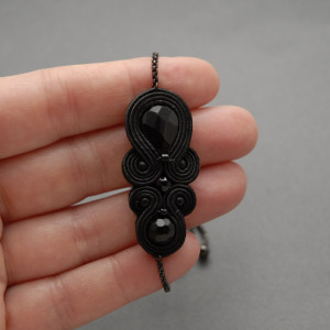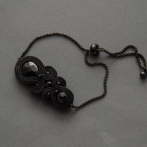 oferuję bransoletkę zrobioną techniką sutasz, ozdobioną fasetowanymi onyksami i koralikami