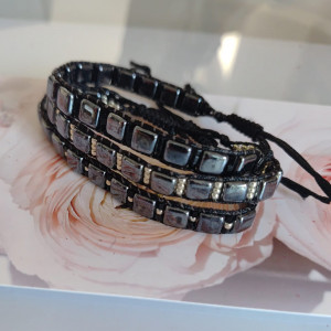koraliki szklane, hematyt,sznurek syntetyczny,