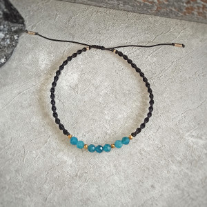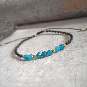 Niezwykle delikatna, a zarazem przyciągająca wzrok bransoletka wykonana z fasetowanych koralików apatytu o średnicy 4 mm, przełożonych drobniutkimi hematytami w kolorze złotym.