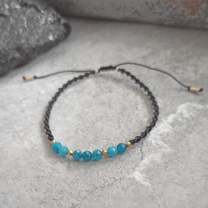 Paseczek bransoletki wykonany techniką makramy o szerokości około 3-4 mm z mocnego, nylonowego sznurka, dedykowanego do tego typu prac. Bransoletka również wspaniale się prezentuje w kompletach z innymi bransoletkami.