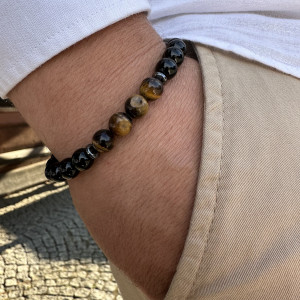 Bransoletka wykonana z czarnych onyksów w połączeniu z tygrysim okiem.
