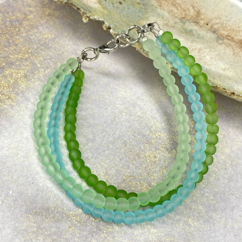 Bransoletka w odcieniach pastelowej zieleni to subtelny akcent, który pięknie uzupełnia codzienną stylizację. Trzy rzędy matowych koralików w delikatnych, zróżnicowanych tonach zieleni układają się w spójną, lekką kompozycję - idealną dla osób lubiących spokojną, wyważoną estetykę nawiązującą do kolorów natury. Srebrzyste detale dodają całości świeżości i nowoczesnego charakteru, a wygodne zapięcie na karabińczyk zapewnia komfort noszenia na co dzień, zarówno przy eleganckich, jak i bardziej casualowych stylizacjach.
