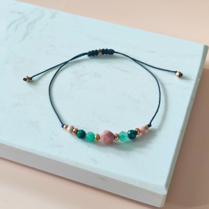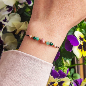Rozmiar bransoletki jest regulowany za pomocą przesuwanego zapięcia makramowego, więc dostosujesz ją do swojego nadgarstka.